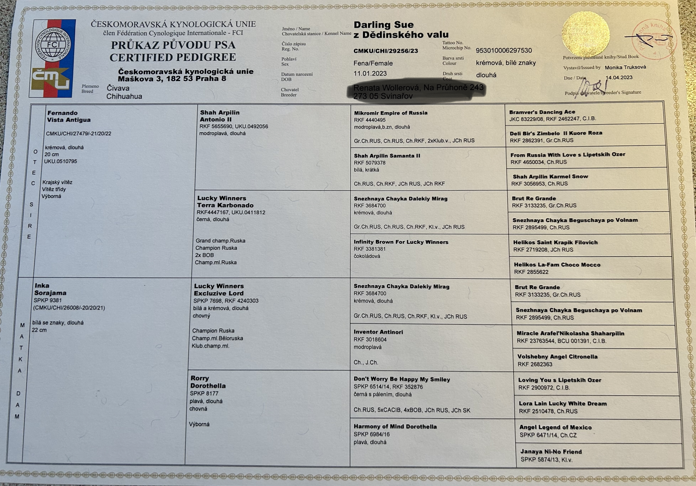 17.11.2024 - naše fenka DARLING SUE z Dědinského valu se umístila jako V4 | |