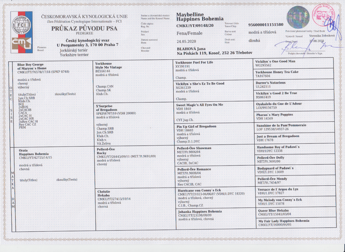 Otec - JCh. Ch. BLUE BOY GEORGE of Maryon’s Home | |